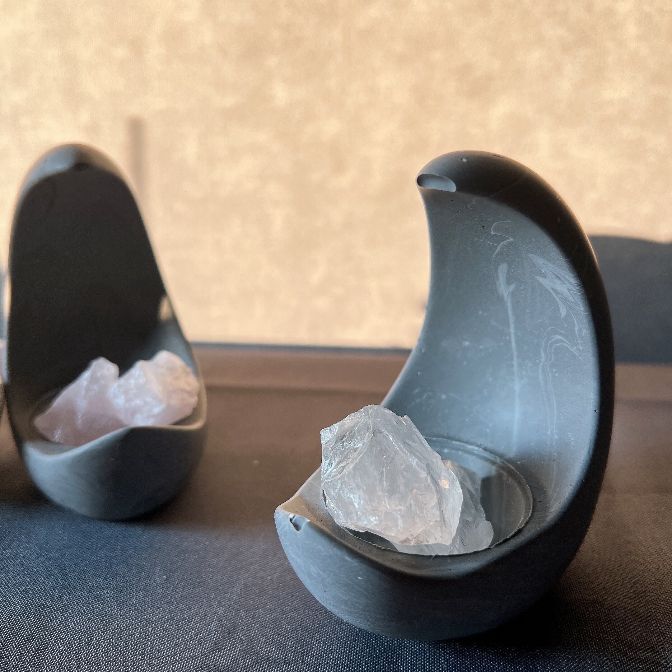 ジェスモナイトは水性樹脂の一種で、石のような手触りと落ち着いた風合いをもち、VOC・有機溶剤フリーの人体と環境にやさしく、海外でも人気の材質です。