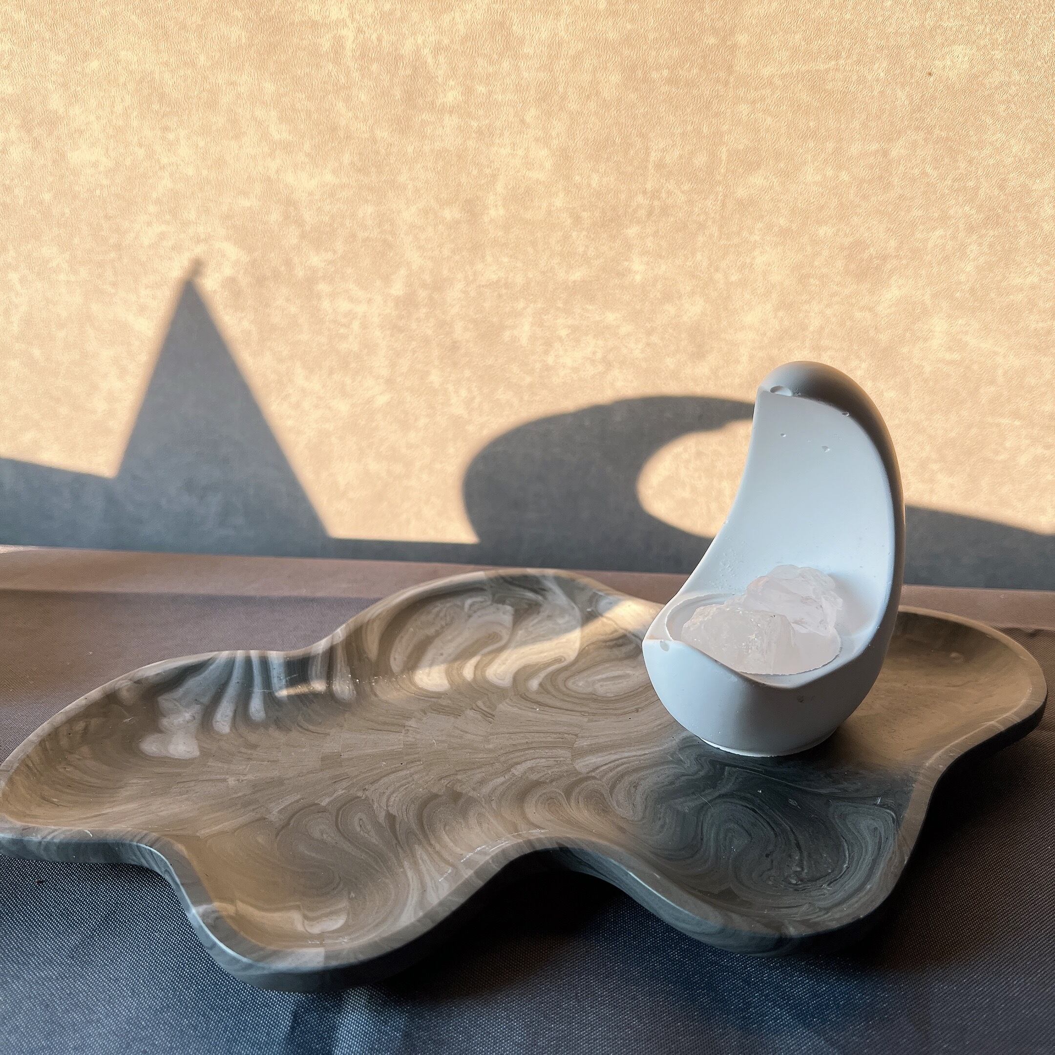 ジェスモナイトは水性樹脂の一種で、石のような手触りと落ち着いた風合いをもち、VOC・有機溶剤フリーの人体と環境にやさしく、海外でも人気の材質です。